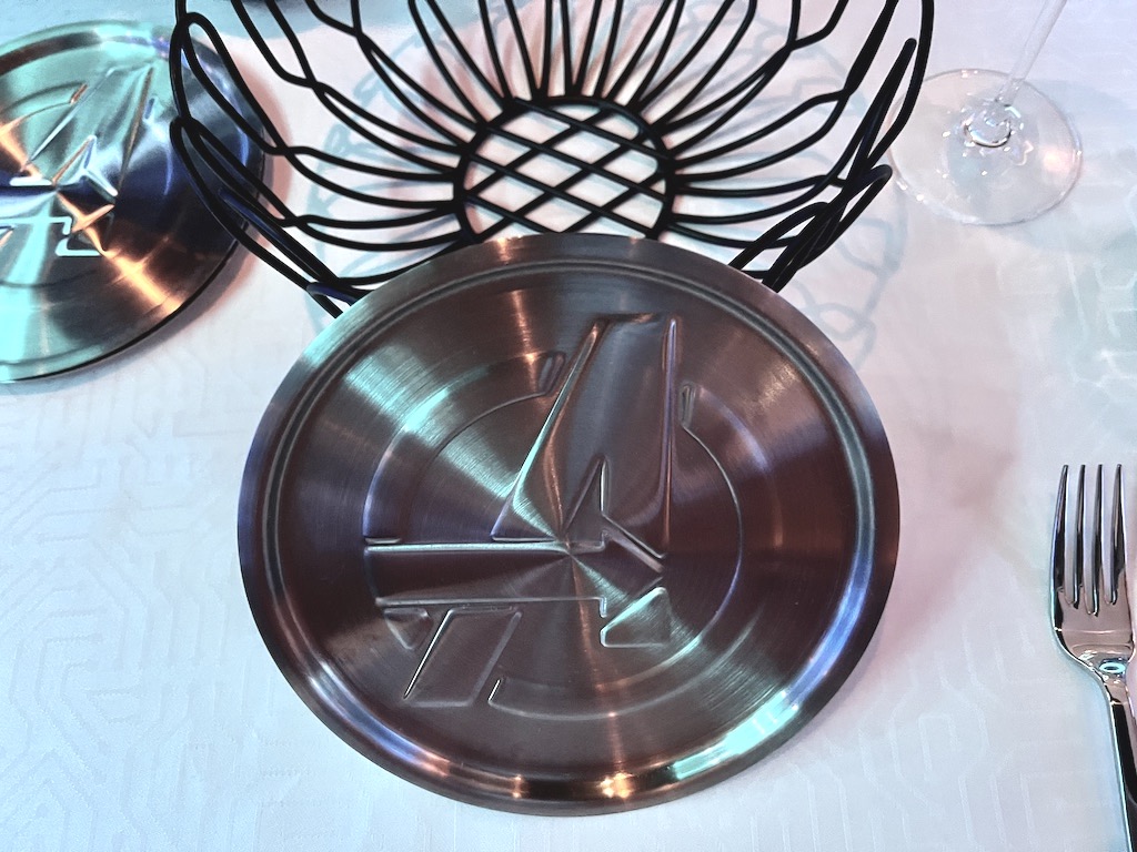 Worlds of Marvel Avengers: Quantum Encounter has unique decor, from the metallic bread service plates to the action-packed Avengers missions from Marvel movies shown on the large screens throughout the restaurant.